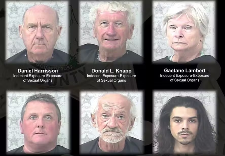 Os naturistas presos foram identificados como Daniel Harrisson, Donald Knapp, Gaetane Lambert, Steven Marhenke, Elmer Quandt e Nicolas Ramos.