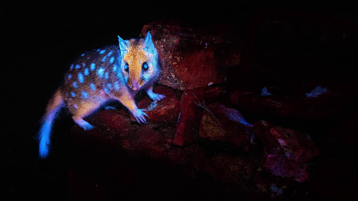 O também conhecido como quoll oriental é um marsupial da Tasmânia que possui um processo chamado biofluorescência. Ele está ameaçado de extinção, já tendo sido extinto de outras regiões da Austrália, segundo a lista de espécies ameaçadas da IUCN (União Internacional para Conservação da Natureza).