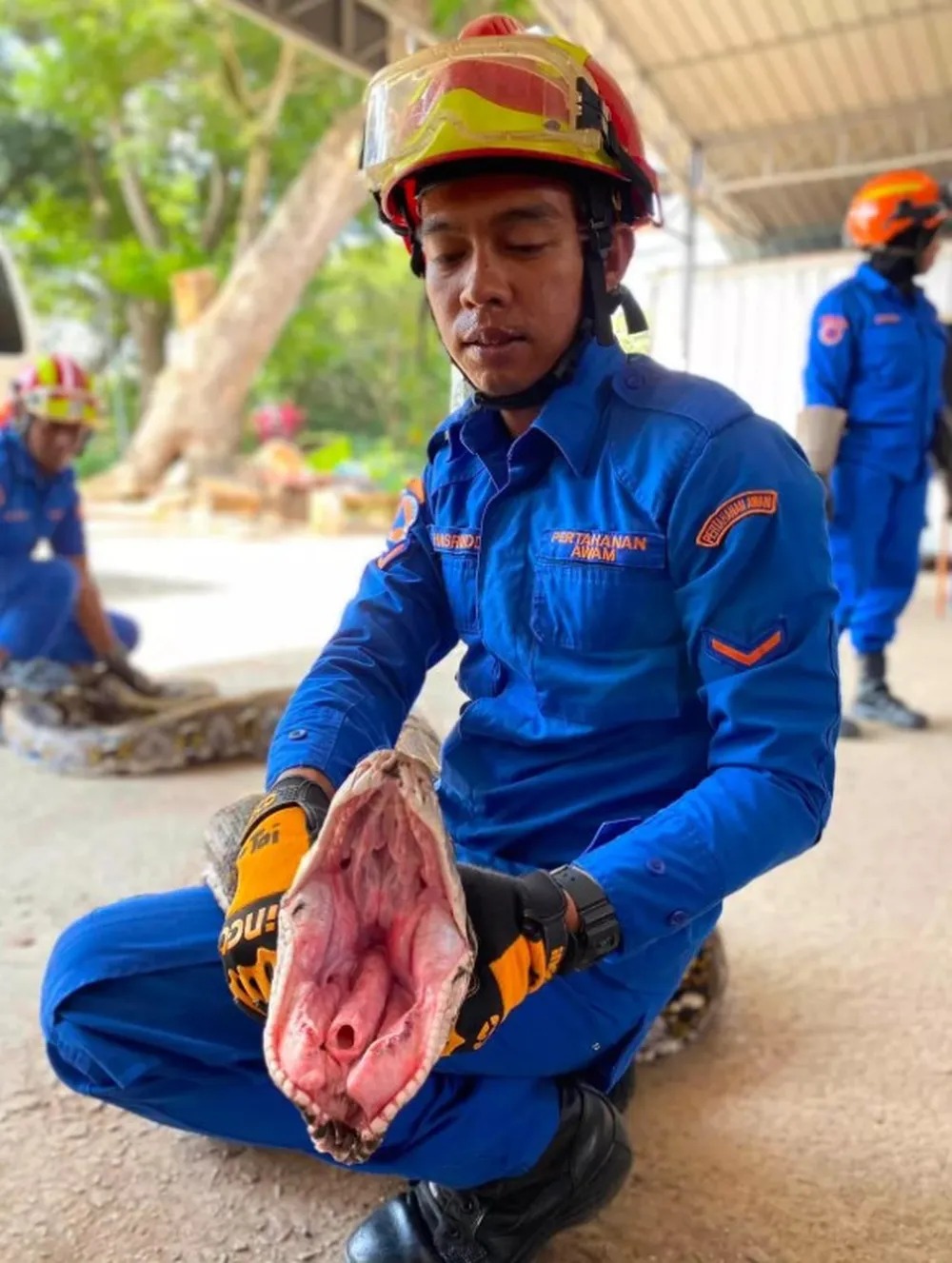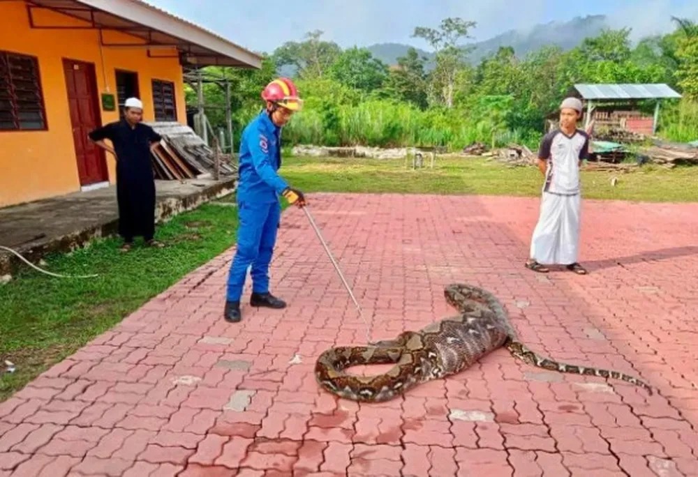 “Recebemos a denúncia às 8h23m e chegamos ao local pouco depois. Um total de quatro membros foram destacados e chegaram ao local 25 minutos depois. Depois de chegar ao local, membros da Força de Defesa Civil de Kubang Pasu viram que a píton reticulada havia engolido uma cabra que estava no curral perto da casa do reclamante”, informou o Corpo de Bombeiros.