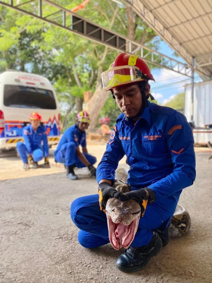 O grande almoço do enorme animal o deixou exausto, incapaz de se mover devido ao volume da presa que havia consumido. Por isso, os bombeiros não tiveram muito trabalho.