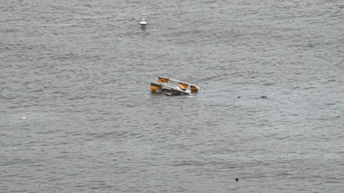 Em imagens transmitidas por emissoras locais, é possível ver partes do helicóptero no rio, ao lado da rodovia West Side