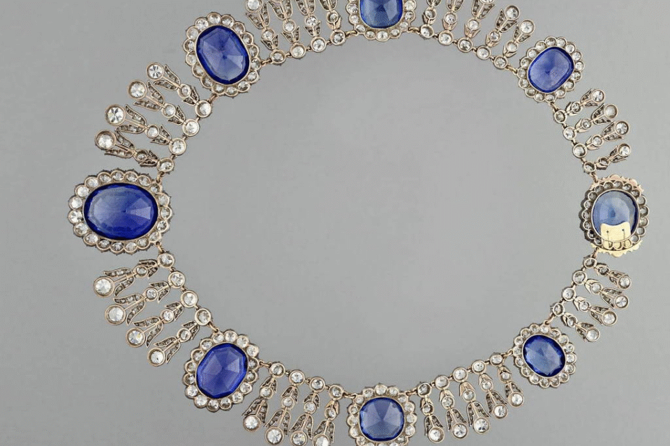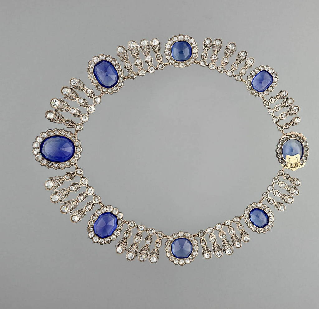 Colar de safiras das rainhas Hortênsia e Maria Amélia – com oito safiras e 631 diamantes: