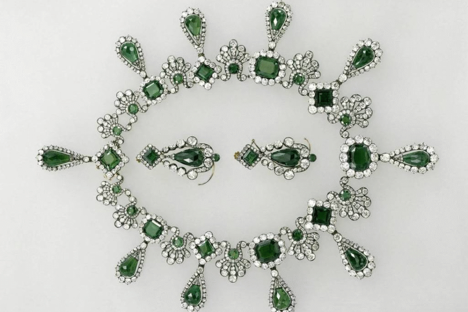 Colar e brincos de esmeraldas da imperatriz Maria Luísa – presente de Napoleão em 1810:
