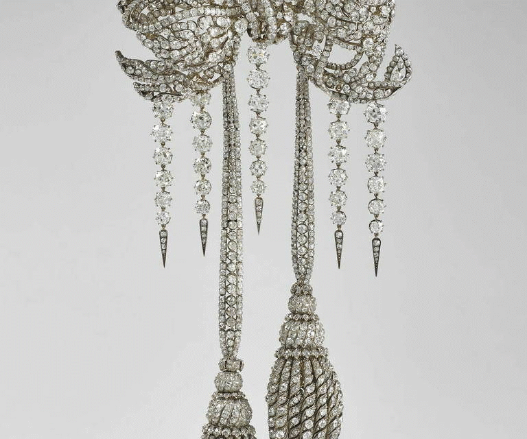 Broche em laço da imperatriz Eugênia – feito com mais de 2 mil diamantes, usado em recepção à rainha Vitória: