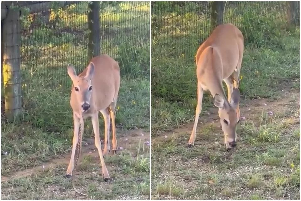 Veado é flagrado comendo uma cobra; assista ao vídeo