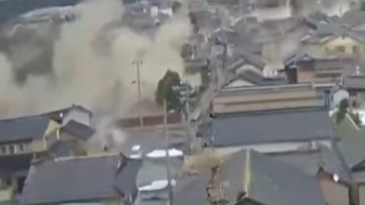 Imagens divulgadas pela mídia local mostraram um prédio desabando em uma nuvem de poeira na cidade costeira de Suzu
