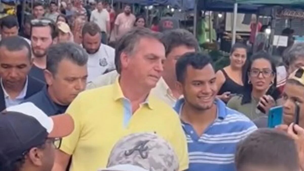 O ex-presidente Jair Bolsonaro (PL) esteve em Nerópolis, na tarde de sábado (23). Ele visitou uma feira da cidade com o senador e presidente estadual do PL, Wilder Morais (PL). O ex-chefe do Executivo foi recebido por apoiadores aos gritos de “mito” e tirou fotos.