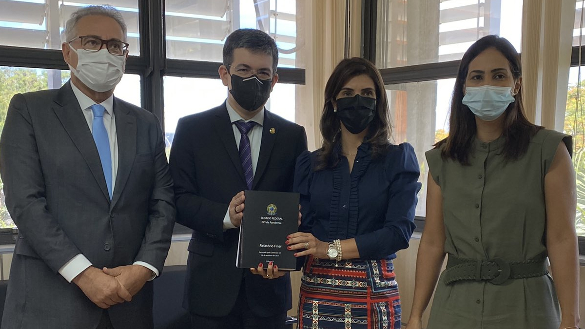 O Ministério Público Federal (MPF) recebeu, nesta quinta-feira (28), o relatório final da Comissão Parlamentar de Inquérito (CPI) da Covid-19, do Senado. Os senadores Renan Calheiros (MDB-AM) e Randolfe Rodrigues (Rede-AP), relator e vice-presidente do colegiado, entregaram o documento à procuradora-chefe da unidade do MPF no Distrito Federal, Anna Paula Coutinho de Barcelo Moreira, e sua substituta, Ana Carolina Alves Araújo Roman.