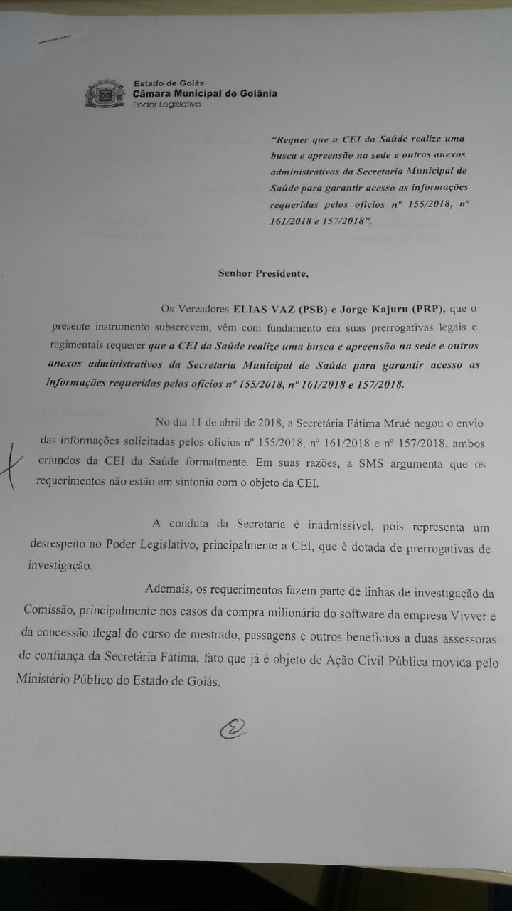 “O requerimento de prisão foi assinado por mim e pelo Jorge Kajuru assim que ficamos sabendo da posição da secretária de negar as informações. Essa é uma postura de afronta às investigações que estão sendo feitas. Um secretário negar uma decisão de uma comissão permanente já configuraria crime de responsabilidade. Aqui, temos mais um agravante, o de obstrução. Nossa CEI é semelhante a uma polícia judiciária, então temos poder para investigar e exigir documentos. todos os três pontos são pertinentes, sim”, afirma Vaz.