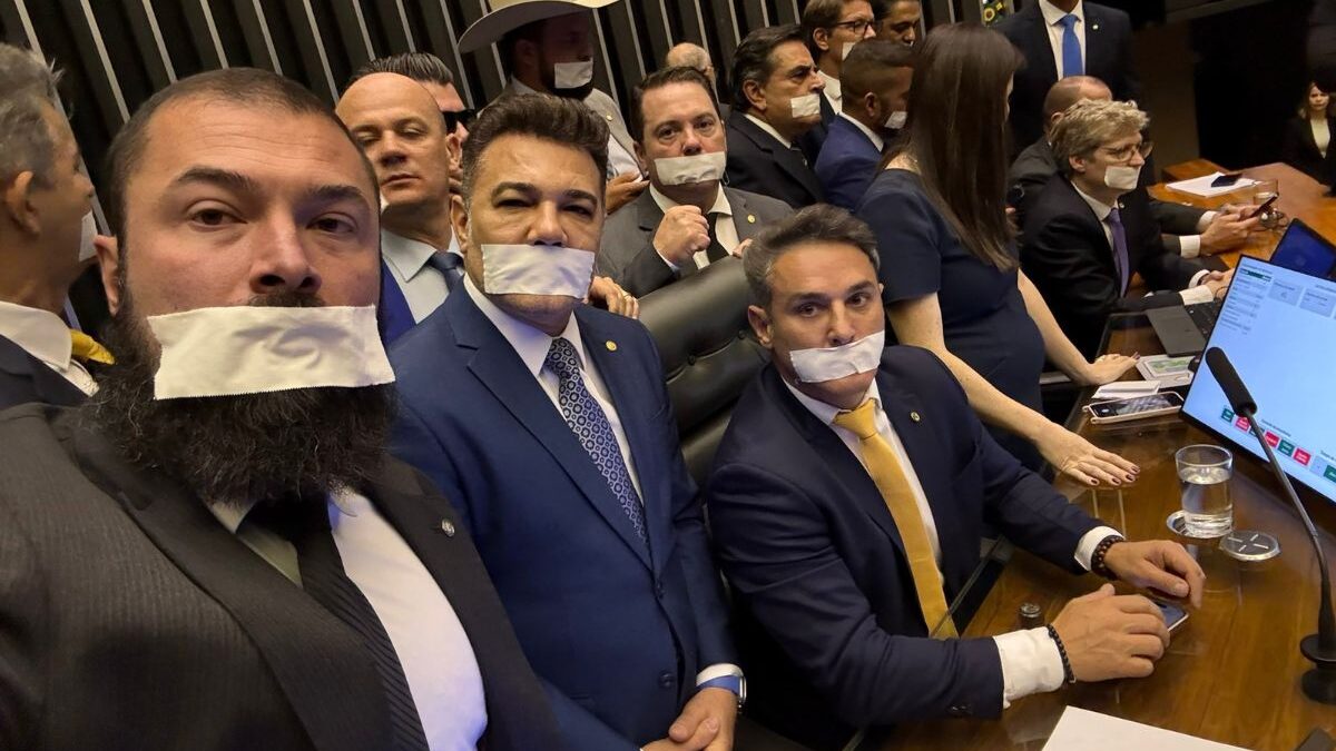 Com espadrapo na boca, bolsonaristas prometem obstruir pauta do Congresso
