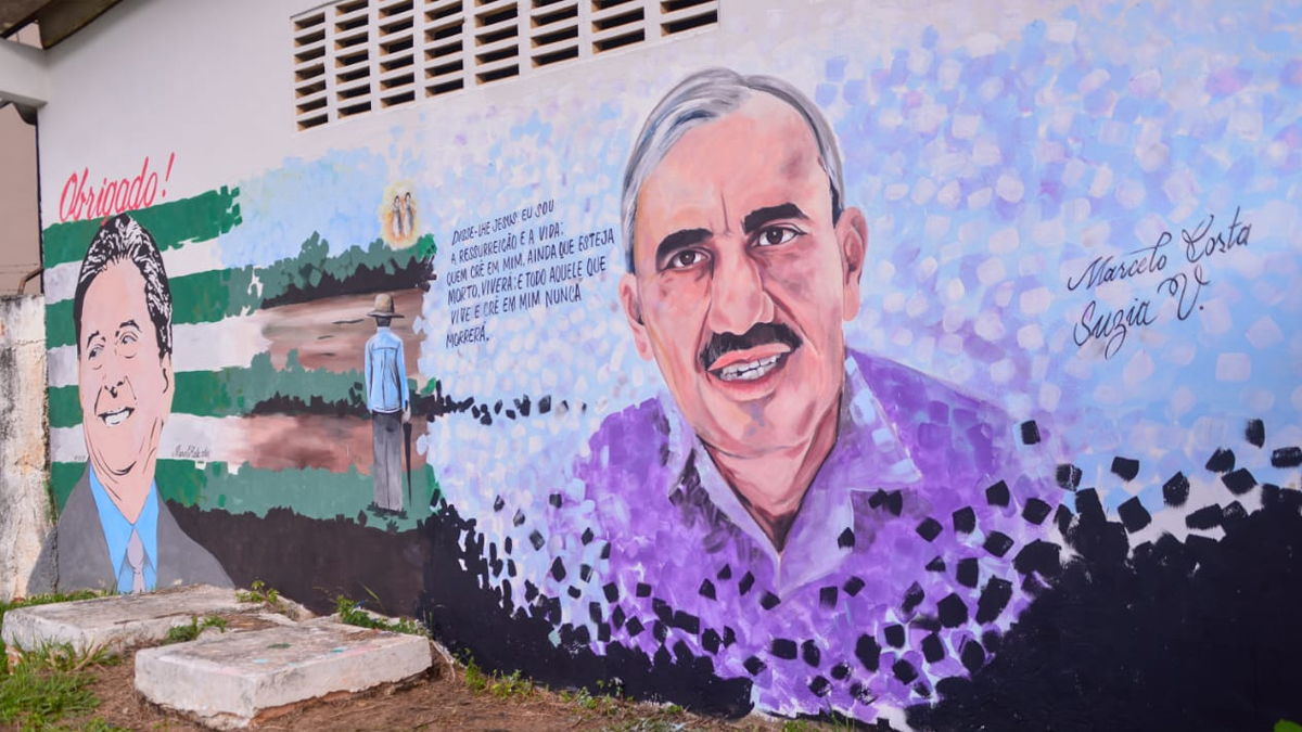Junto com políticos, amigos e familiares, artistas da secretaria municipal de Cultura também resolveram prestar homenagem ao pai do prefeito Gustavo. Eles imortalizaram Léo Mendanha ao lado de Maguito Vilela – ex-gestor da cidade e prefeito ele de Goiânia, falecido em janeiro – com uma arte na parede lateral de um dos prédios da Cidade Administrativa.