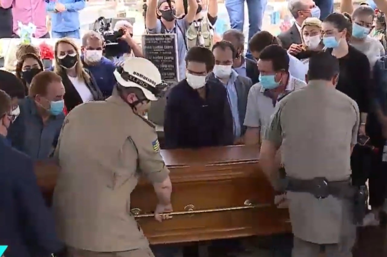 Ao chegar ao Cemitério São Miguel a Polícia Militar prestou homenagem com tiros de festim ao chão. Militares do Corpo de Bombeiros carregaram o caixão até a entrada do local do enterro sob aplausos. Daniel Vilela, Ronaldo Caiado, Gustavo Mendanha, entre outros familiares e amigos terminaram de carregar o ataúde até o jazigo.