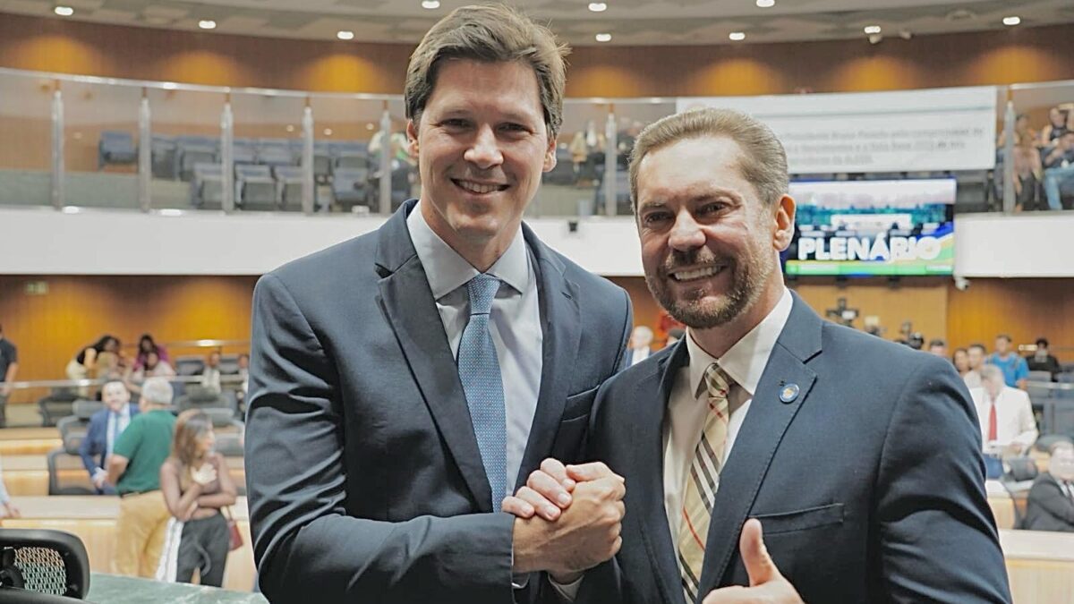 O governador em exercício, Daniel Vilela (MDB), fez um reconhecimento público ao presidente da Assembleia Legislativa de Goiás (Alego), deputado Bruno Peixoto (UB), reconduzido à presidência da Casa para o biênio 2025/2027, durante a sessão solene de instalação da 3ª Sessão Legislativa Ordinária da 20ª Legislatura, realizada na tarde desta segunda-feira, 17. Ao entregar a mensagem do Executivo com o plano de metas para 2025, Vilela destacou a relevante contribuição do chefe do Parlamento goiano para o progresso do estado.