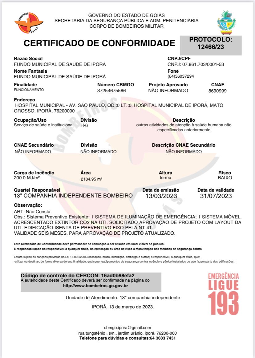 A Secretaria de Saúde nega e alega que a prefeitura de Iporá não cumpre as obrigações. Em nota, a SES-GO diz que após visita técnica aos leitos de UTI do Hospital Municipal de Iporá, o repasse de cofinanciamento para os leitos foi interrompido, pois a unidade não possui alvarás da Vigilância e do Corpo de Bombeiros Militar, além de não atender normas de funcionamento. A SES-GO diz que aguarda que a gestão municipal regularize essas pendências para reavaliar a situação.