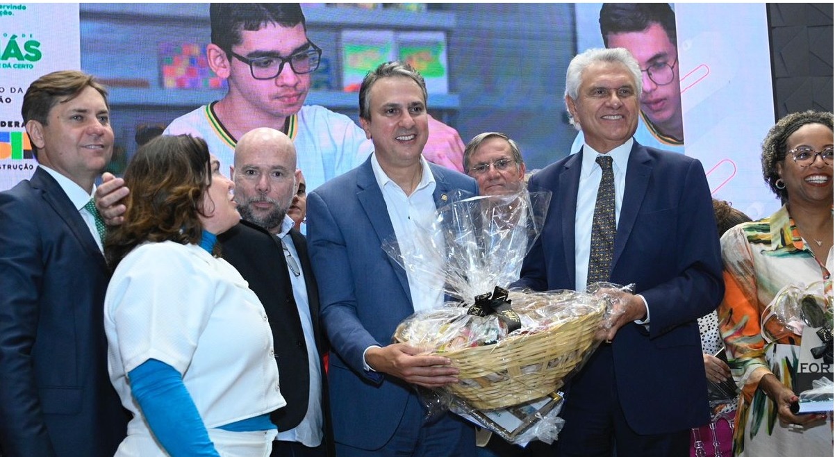 Ao lado do governador Ronaldo Caiado (União Brasil), Camilo Santana pontuou detalhes do Pacto Nacional pela Retomada de Obras da Educação Básica, o Compromisso Nacional Criança Alfabetizada e o Programa Escola em Tempo Integral são programas do Ministério da Educação (MEC).