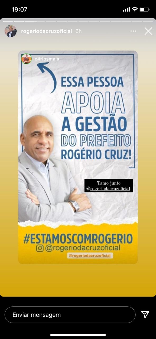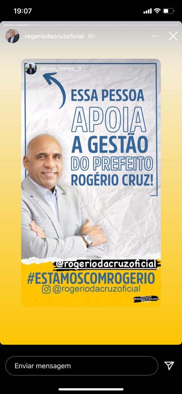 Preocupados com a repercussão que tomou a crise entre o MDB e o prefeito Rogério Cruz (Republicanos), o staff do prefeito está pedindo aos funcionários da Prefeitura de Goiânia para que postem em suas redes sociais pessoais um card com uma foto do prefeito com os seguintes dizeres “Essa pessoa apoia a gestão do Prefeito Rogério Cruz”.