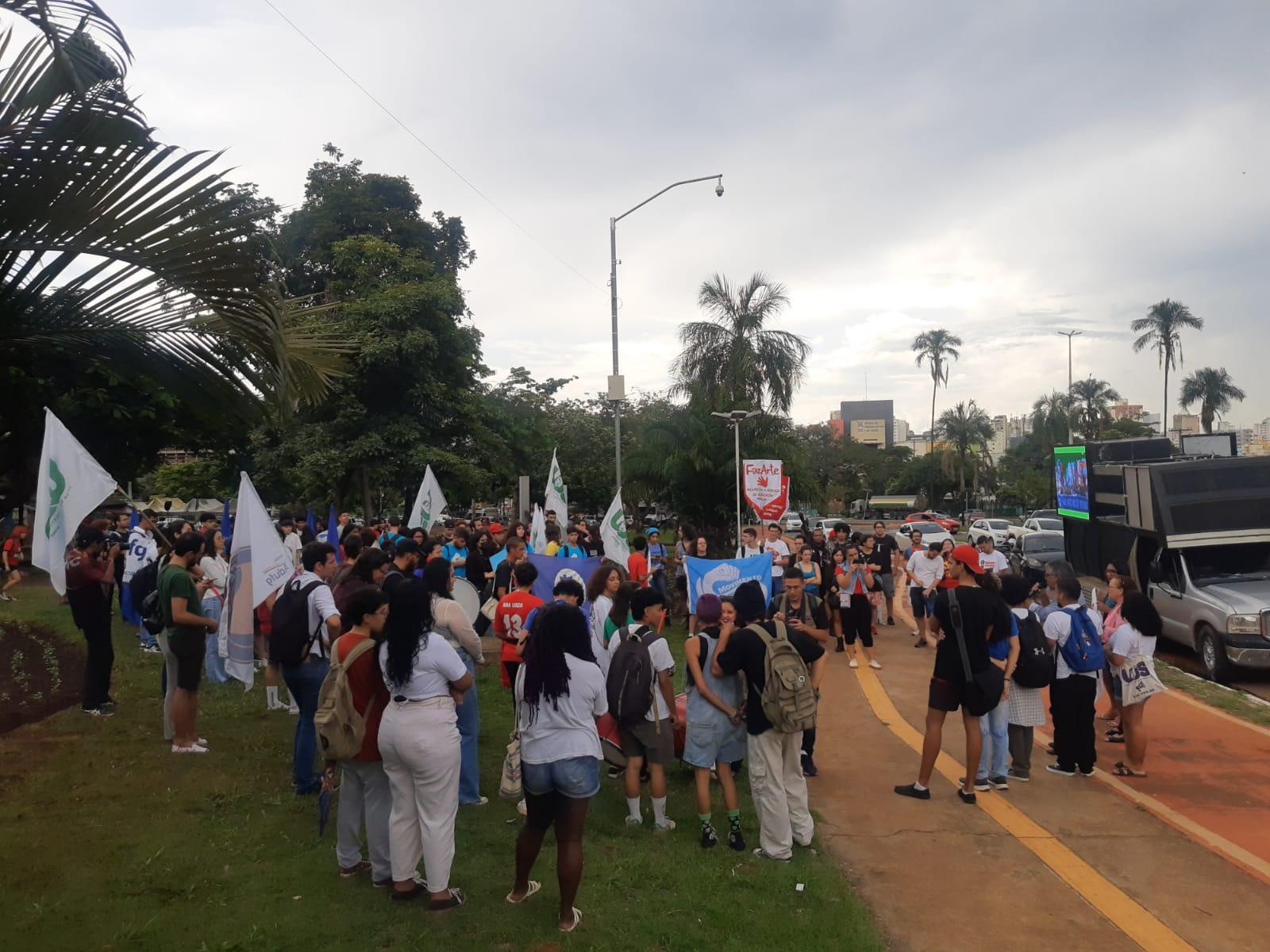 manifestação, que também aconteceu pelo País, teve concentração na Praça Universitária às 14h e seguiu para a secretaria de Estado de Educação de Goiás