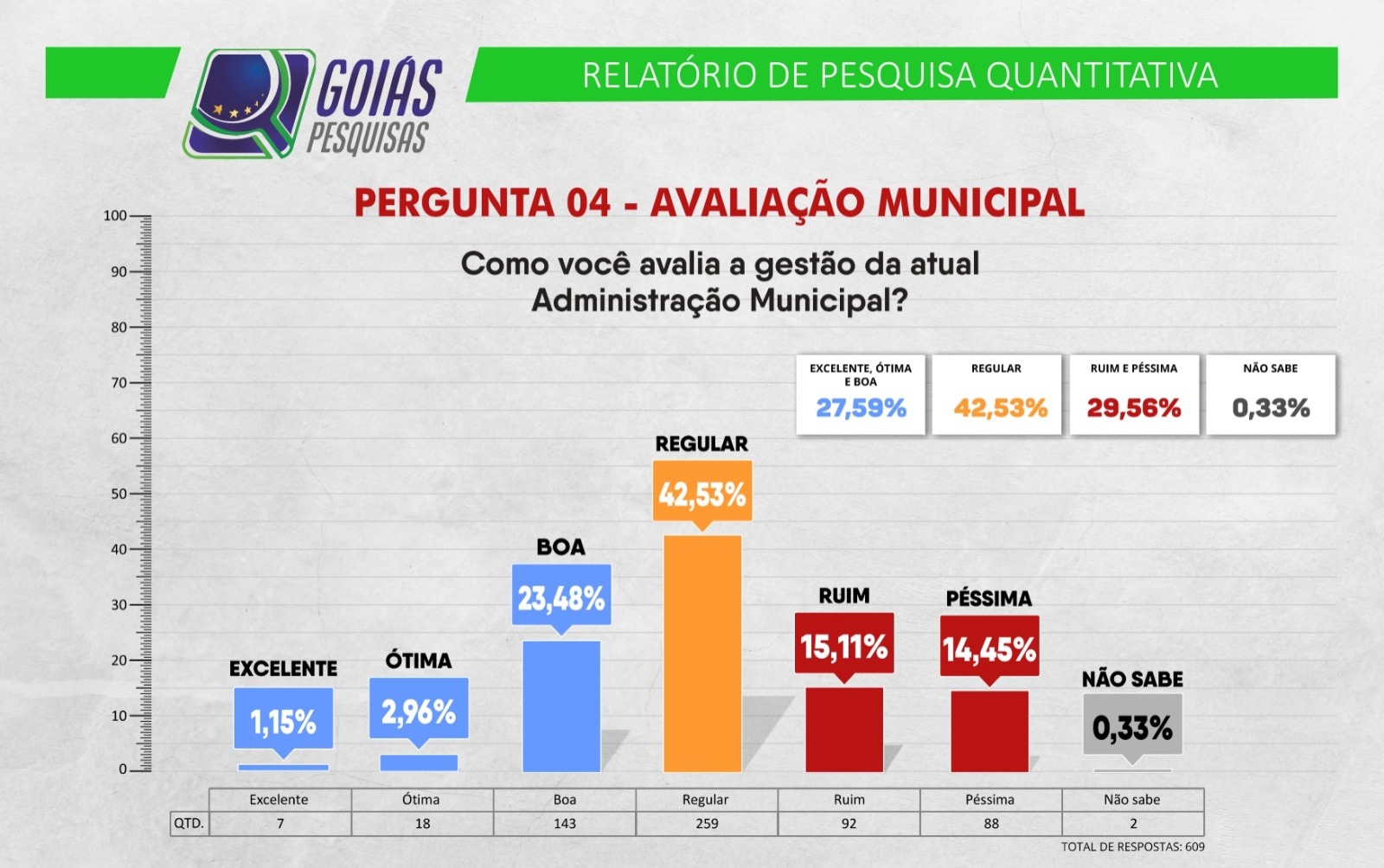 Goiás Pesquisas/Mais Goiás: 27,59% aprovam gestão em Anápolis e outros 29,56% reprovam
