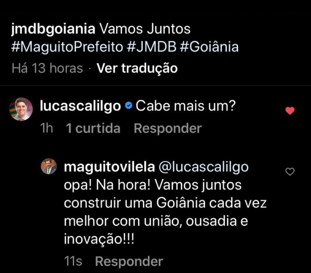 Na mesma rede, Calil respondeu a um tweet de apoio da Juventude do MDB a Maguito com a pergunta: “Cabe mais um?”. O pré-candidato respondeu: “Opa! Na hora!”. Maguito também falou com Lucas Calil pelo telefone, agradecendo a confiança, e ambos ficaram de conversar pessoalmente nos próximos dias.