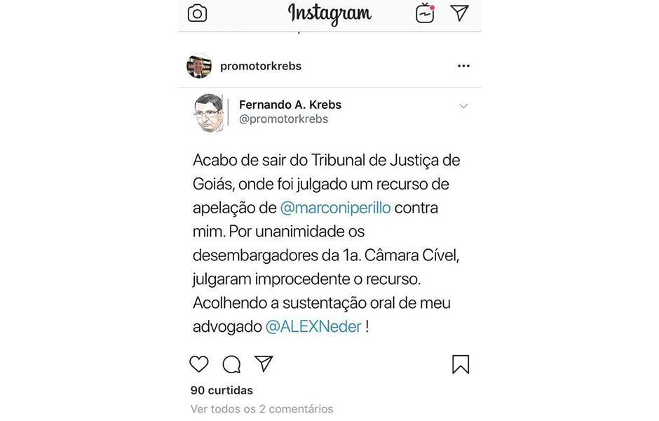 O promotor Fernando Krebs repercutiu a decisão no Twitter e no Instagram com a seguinte mensagem: