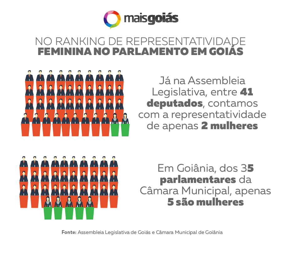 Em Goiás, a realidade da sub-representatividade feminina não é diferente. Na Câmara Municipal, temos apenas cinco vereadoras dos 35 parlamentares da Casa. Já na Assembleia, o número é ainda mais assustador – entre os 41 deputados, há apenas com Lêda Borges (PSDB) e Adriana Accorsi (PT) no Legislativo goiano.