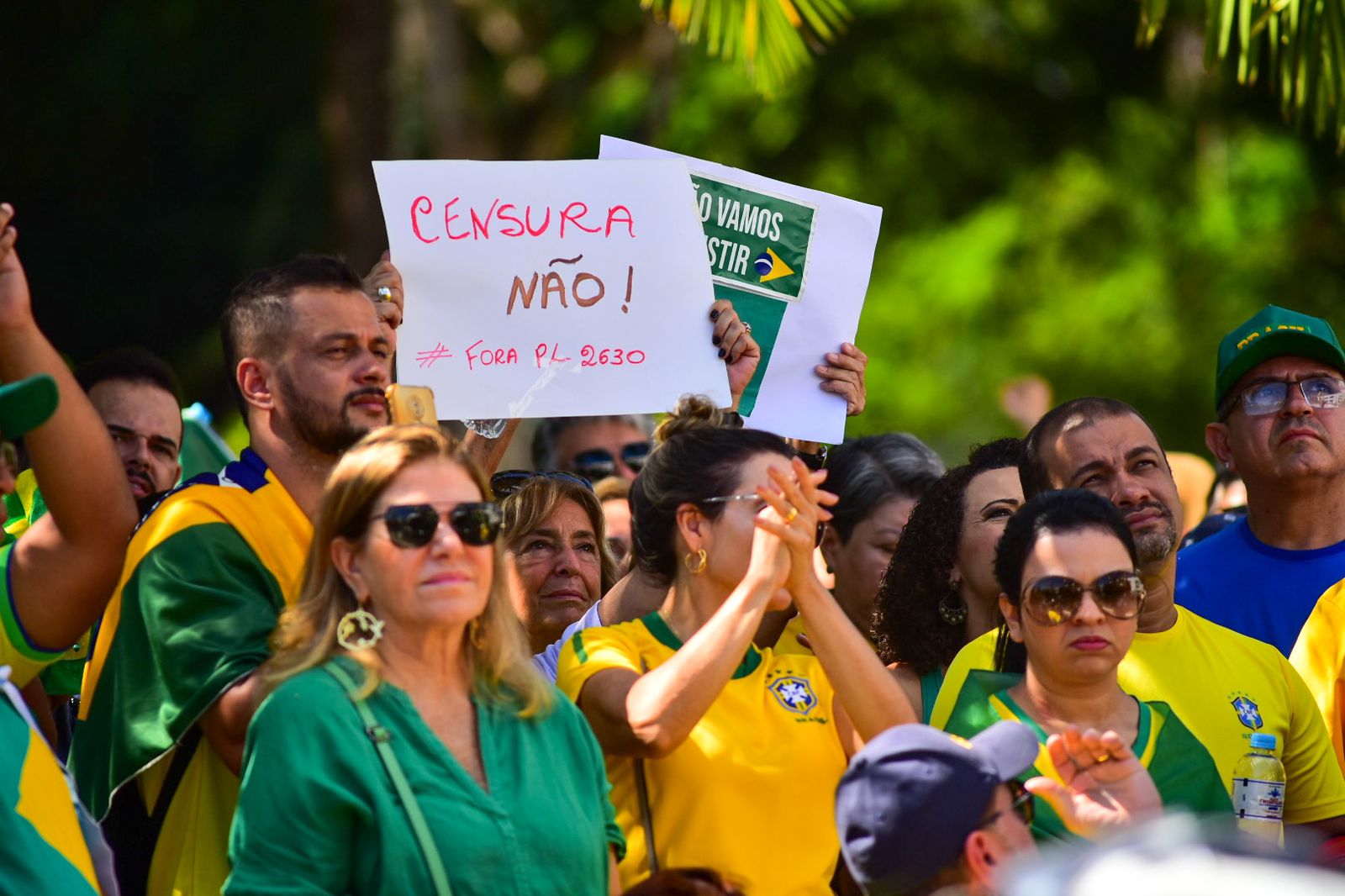 Um dos pontos mais abordados por quem se reveza ao microfone é o projeto de lei das fake news, que propõe a regulamentação de plataformas digitais (como Google, Meta, Twitter e Tik Tok) com objetivo de conter a disseminação de notícias falsas. Para as pessoas que participam do protesto, o projeto institucionaliza a “censura” na internet.