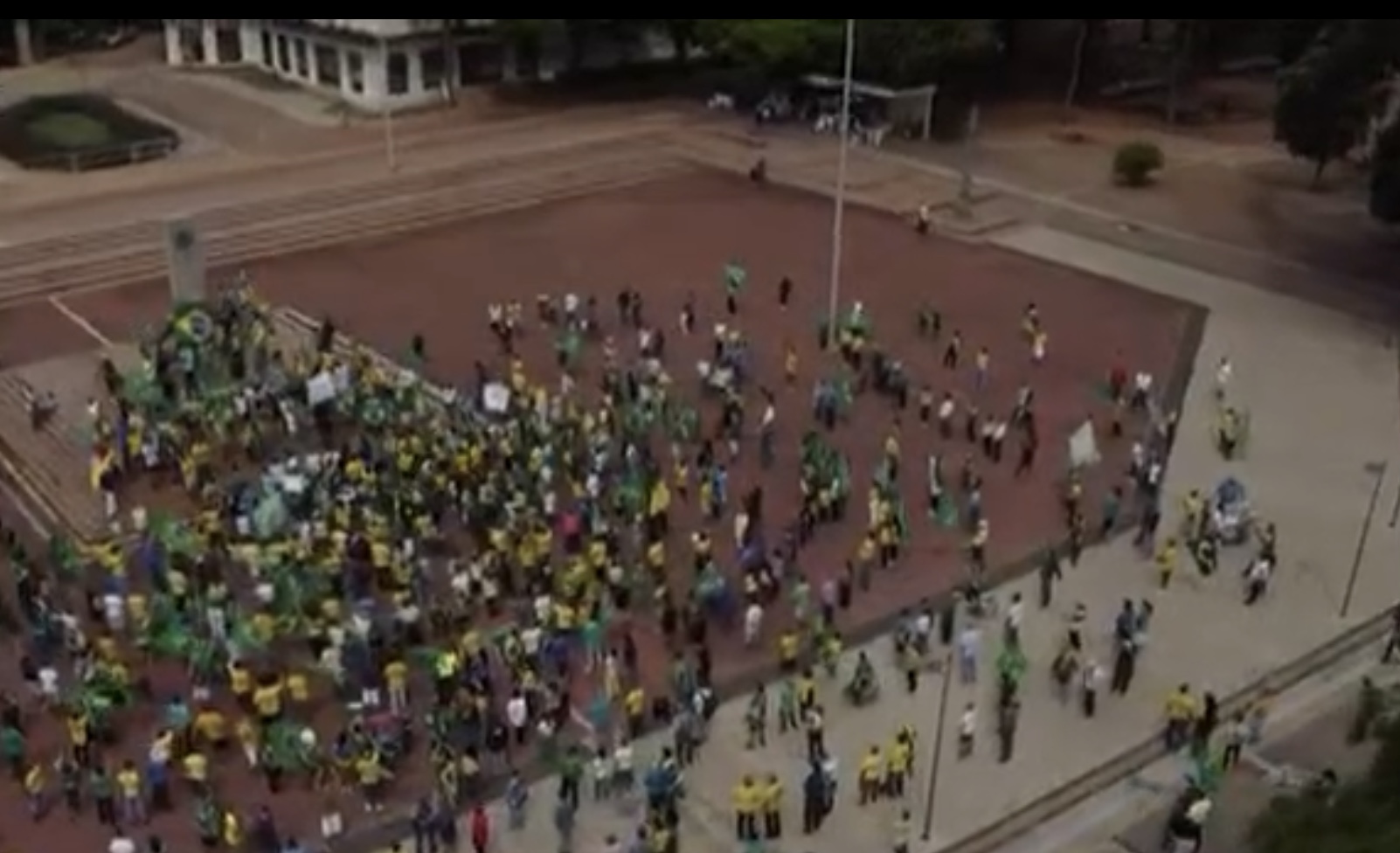 Manifestantes pró-Bolsonaro reunidos na Praça Cívica, em Goiânia, neste sábado (Foto: Reprodução/TV Anhanguera)