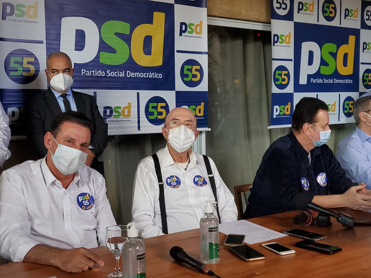 A ida de Meirelles ao Palácio das Esmeraldas foi acompanhada por toda a comitiva do PSD. Além de Gilberto Kassab, estavam Vilmar Rocha, Francisco Jr., Wilde Cambão e Simeyzon Silveira.