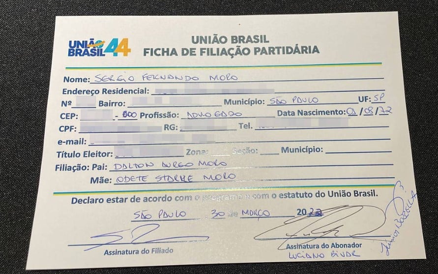 Antes mesmo de ser homologada em cartório, a filiação já é alvo de questionamentos internos de uma ala da União Brasil que não quer que Moro saia candidato ao Palácio do Planalto pela legenda.