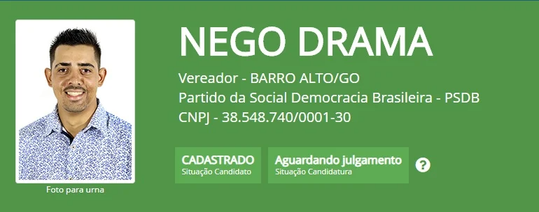 Entre o sucesso e a lama, Nego Drama é candidato do PSDB para vereador de Barro Alto. Resta saber se a trajetória do candidato será vitoriosa nas urnas, como diz a música dos Racionais MC’s.