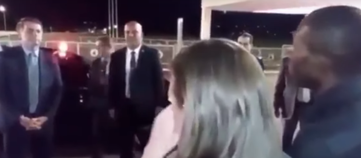Então, ele dispara: “Você está entendendo, eu estou falando brasileiro. Bolsonaro, acabou. Você está recebendo mensagem no seu celular. Todo mundo, todo brasileiro está recebendo mensagem no celular. Você não é presidente mais. Precisa desistir. Você está espalhando vírus e vai matar os brasileiros.” Ao fundo, uma mulher se indigna e diz: “O que é isso?”