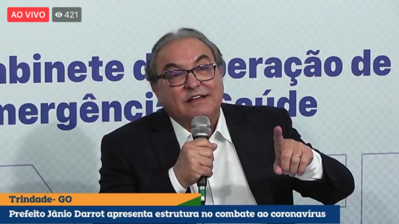 O prefeito de Trindade, Jânio Darrot (PSDB), abriu uma transmissão ao vivo no Facebook, nesta manhã de quinta-feira, para responder o governador Ronaldo Caiado (DEM) – que o acusou ontem de “contribuir para disseminar o coronavírus” ao “liberar bar, forró, festa de noite”.