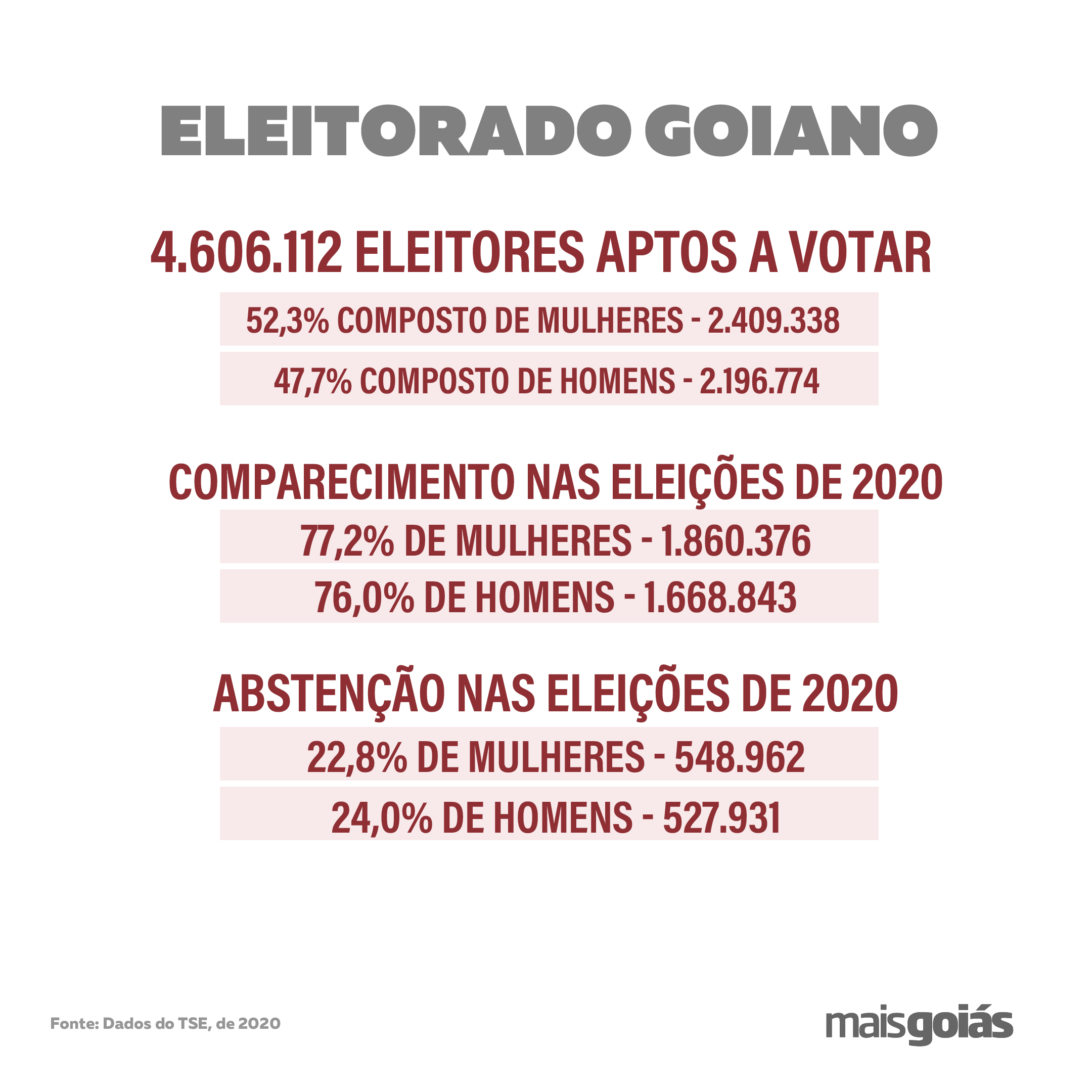 Embora componham a maior parte da população no território goiano – 50,3%, segundo dados do Instituto Brasileiro de Geografia e Estatística (IBGE) -, elas seguem sendo menos votadas no Estado. Nas últimas eleições municipais em 2020, por exemplo, 2.409.338 mulheres estavam aptas a votar em Goiás.