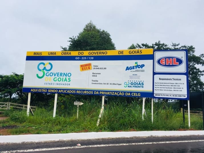 A pavimentação de um trecho das GOs 225 e 139 chamou atenção nacional nesta semana. A parte da estrada recém-asfaltada dá acesso à Fazenda Santa Mônica, de propriedade do presidente do Senado, Eunício Oliveira (MDB) e ganhou, inclusive, uma placa com o nome do político. As obras custaram R$ 30 milhões e foram bancadas com recursos do Estado de Goiás, obtidos por meio da privatização da Celg. A sinalização com o nome de Eunício foi retirada do local após denúncia do site “Buzzfeed”, mas  o assunto chamou atenção do Poder Judiciário.