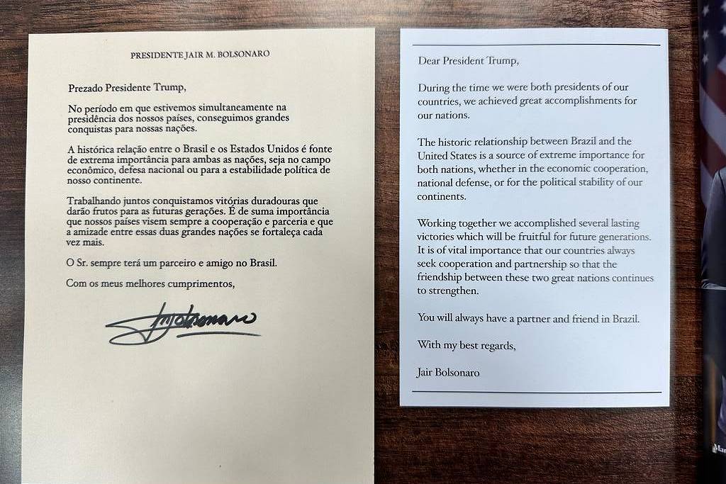 Trump publicou no livro uma carta em que Bolsonaro dizia que os dois, quando comandaram seus respectivos países, trabalharam juntos e conquistaram “vitórias duradouras que darão frutos para as futuras gerações”.