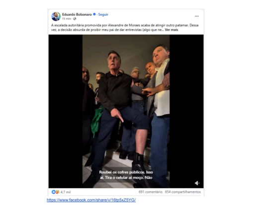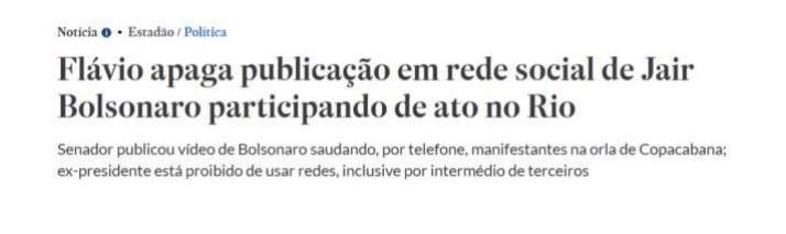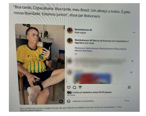 Posteriormente, continua o ministro, também no domingo de manifestações, o senador Flávio Bolsonaro publicou um vídeo do pai dele e apagou logo em seguida. Moraes afirma que o fato de apagar a postagem tinha “claro intuito de omitir o descumprimento das medidas cautelares praticado pelo pai dele”, como mostrou reportagem do portal UOL.