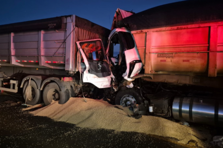 COLISÃO Motorista morre após acidente envolvendo dois caminhões na BR-153, entre GO e MG A vítima foi encontrada pelo Corpo de Bombeiros presa às ferragens do veículo há 6 mêss