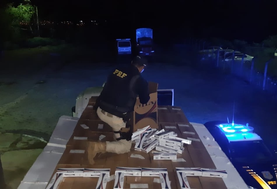 Contrabando Carga de cigarros avaliada em R$ 10 milhões é apreendida pela PRF, em Guapó Um carregamento de cigarros contrabandeados foi apreendido pela Polícia Rodoviária Federal (PRF), na noite de… há 5 anos