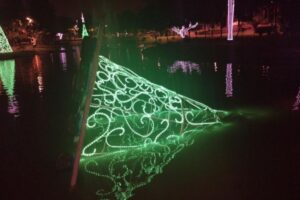 Natal Terceira maior árvore flutuante do Brasil é inaugurada em Goiânia Estrutura de 21 metros fica no Parque Vaca Brava há 1 ano