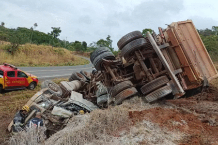 CAPOTAMENTO Motorista morre após caminhão tombar na GO-417, em Aurilândia Vítima ficou presa às ferragens, não resistiu e morreu no local há 1 mês