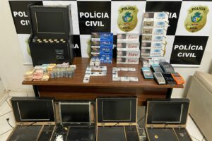 Jogos de azar Máquinas caça-níqueis são apreendidas em bar do Setor Pedro Ludovico, em Goiânia Em patrulhamento pelo setor Pedro Ludovico, em Goiânia, a Polícia Militar (PM) recebeu denúncia anônima… há 6 anos