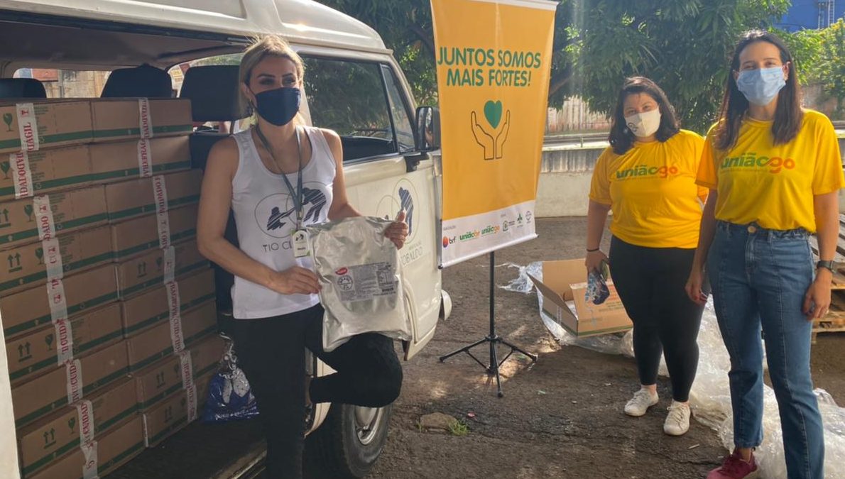 SOLIDARIEDADE Grupo de voluntários distribui 42 toneladas de alimentos em Goiás Criado em Goiás há um ano com o objetivo de “ligar aqueles que querem ajudar… há 4 anos