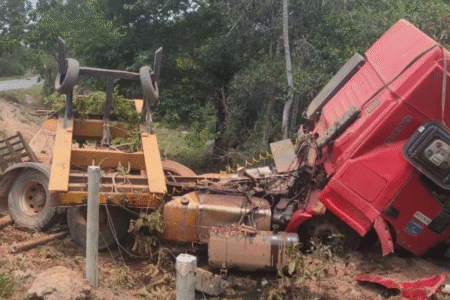 Acidente Caminhoneiro é arremessado para fora da cabine após pneu estourar na GO-230, em Faina Cabine se separou da carreta com o impacto da batida há 1 mês