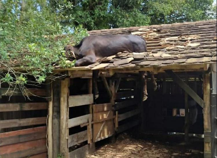 RED BULL TE DÁ ASAS Vaca fica presa no telhado de rancho em Santa Catarina Uma vaca ficou presa no telhado de um rancho em Timbó, na região do Vale… há 5 anos