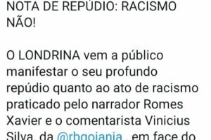 RACISMO Celsinho e Londrina podem entrar com ação contra jornalistas goianos por ato racista O ato de racismo ocorrido no último final de semana na partida entre Goiás e… há 4 anos