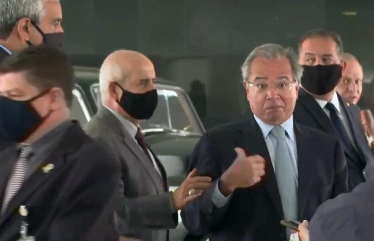 Paulo Guedes Guedes é retirado de coletiva por ministro militar e líder do governo O ministro da Economia Paulo Guedes protagonizou uma cena que chamou a atenção nesta quarta-feira… há 5 anos