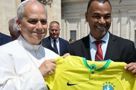 VISITA Em visita ao Vaticano, Cafu se encontra com Papa e entrega camisa do Brasil Cafu esteve presente no Vaticano e foi recebido pelo Papa por conta das celebrações do Jubileu dos Esportistas há 5 mêss