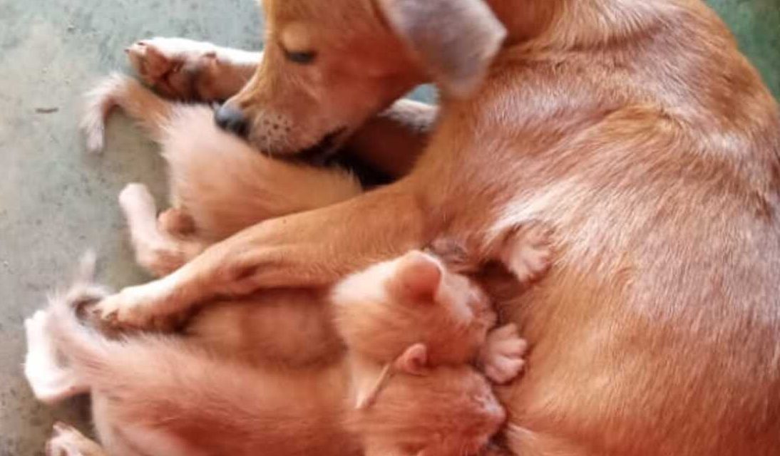MÃE CANINA Cadela adota filhotes de gata que sumiu em Pontalina A doméstica Wezerlene Lúcia, de 36 anos, que mora em Pontalina, flagrou uma situação curiosa… há 4 anos