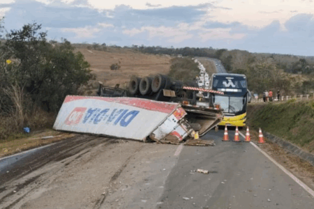 Trânsito GO: Acidente com carreta deixa 3 feridos e congestionamento quilométrico na BR-060 Pistas no sentido norte estão interditadas há 3 mêss