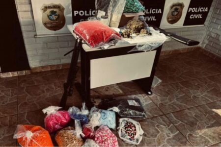 TRÁFICO PC desarticula grupo que comandava venda de drogas em Aparecida de Goiânia Armas de fogo, uma grande quantidade de entorpecentes e cápsulas para medicamentos foram apreendidos durante a ação há 5 mêss